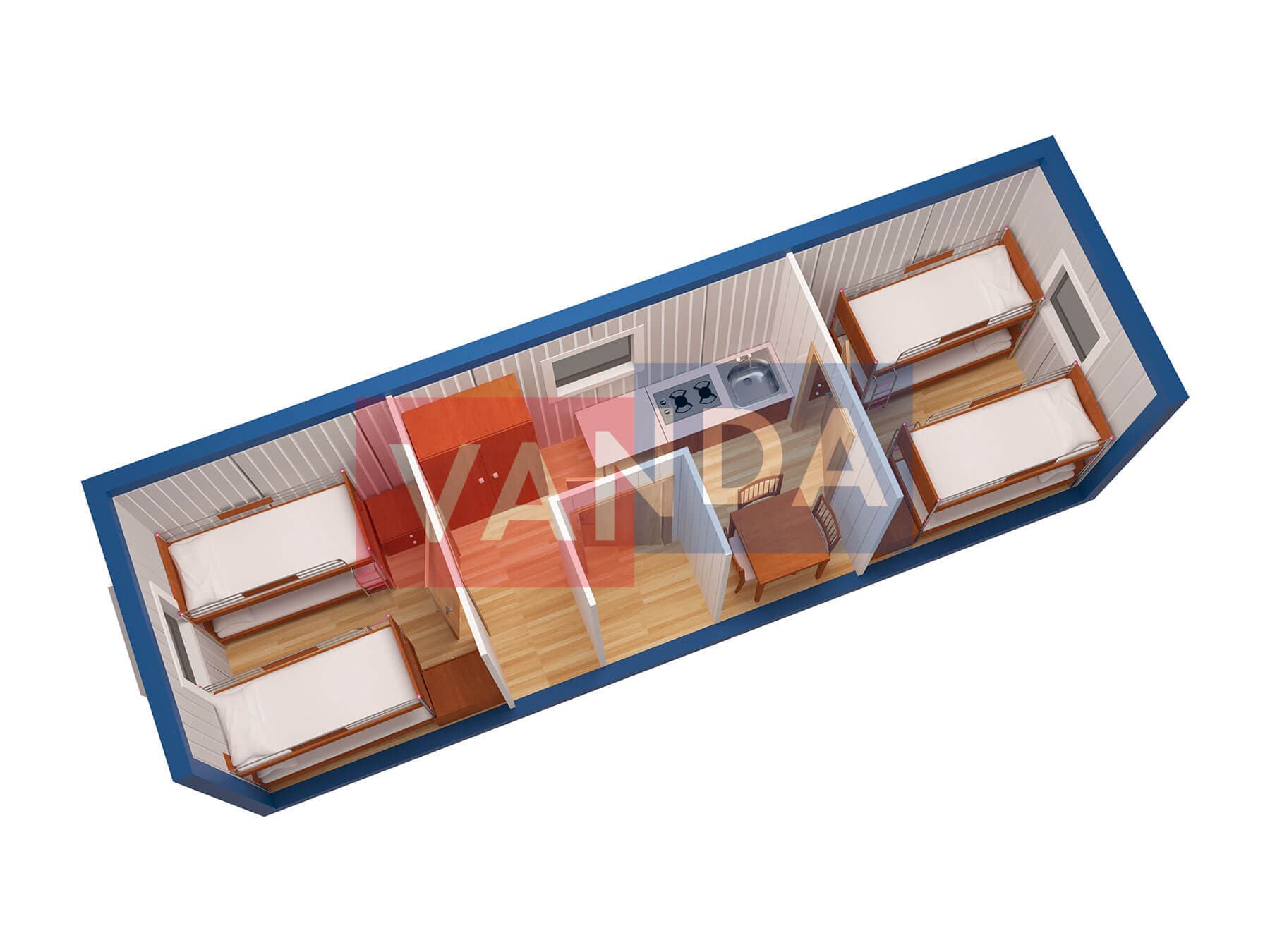 Металлическая бытовка без тамбура 5,85 x 2,4 - Оргалит ДВП
